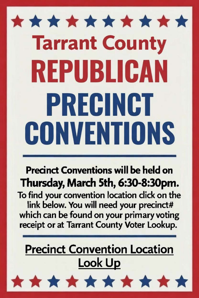 Help keep Tarrant County RED! Become a precinct chair or block captain today.