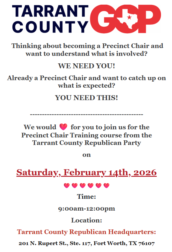 Join Leslie Barrows for a meet & greet and fundraiser as she shares her vision for serving Tarrant County families with fairness, integrity, and compassion as a Republican candidate for […]