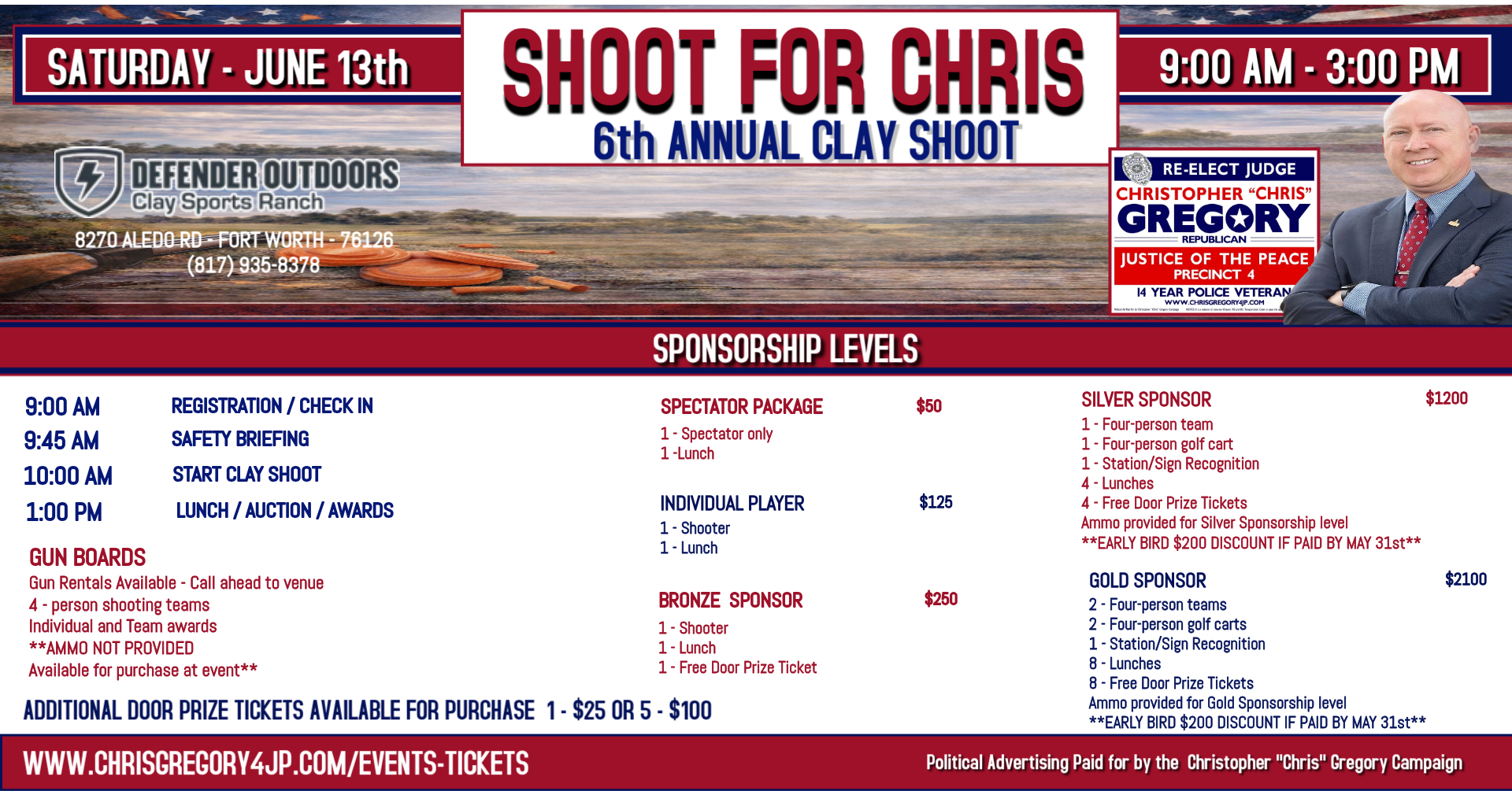 SHOOT FOR CHRIS 6th annual clay shoot www.chrisgregory4jp.com/events-tickets